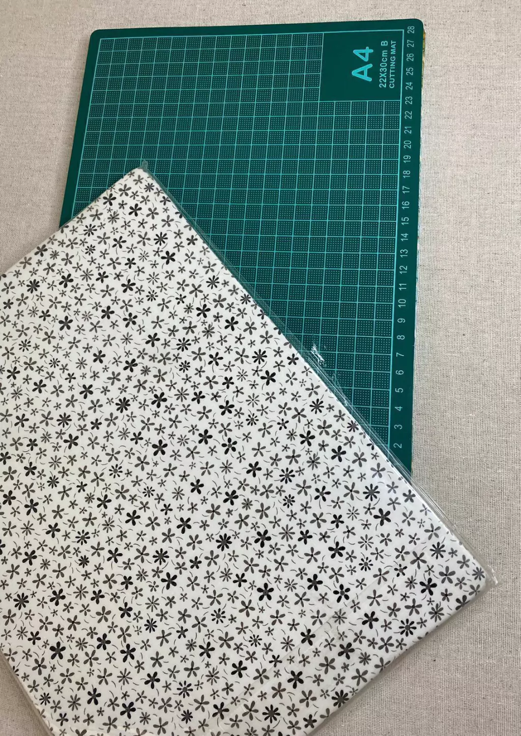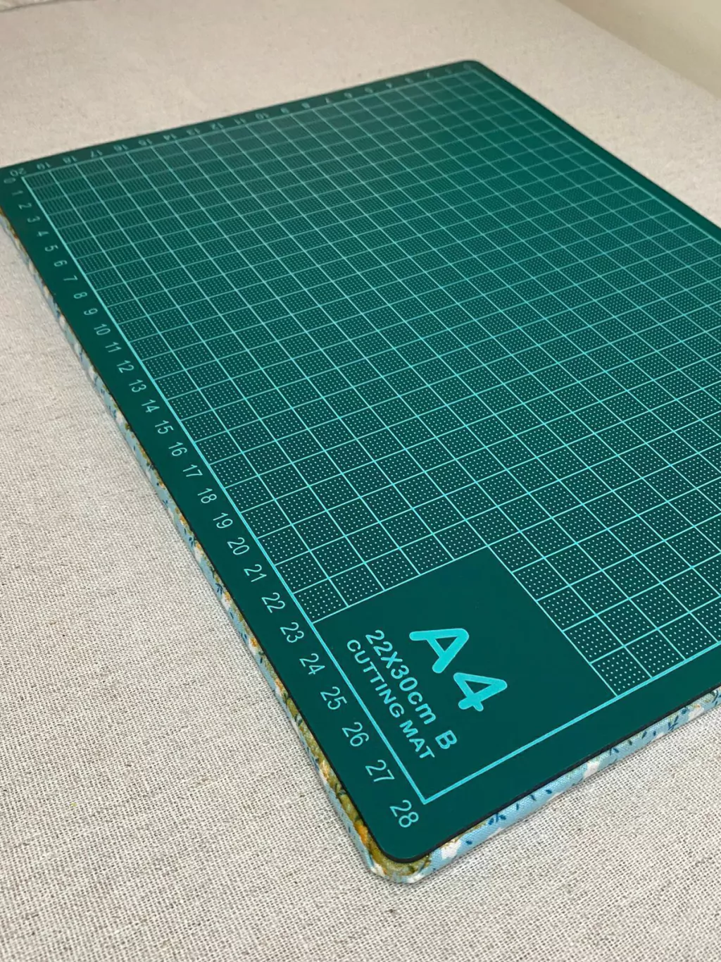 A base de corte, como o próprio nome sugere, é uma manta que fica entre a mesa e o material a ser cortado, possui medidas na frente e que auxiliam na hora dos cortes, podem ser em centímetros ou polegadas.